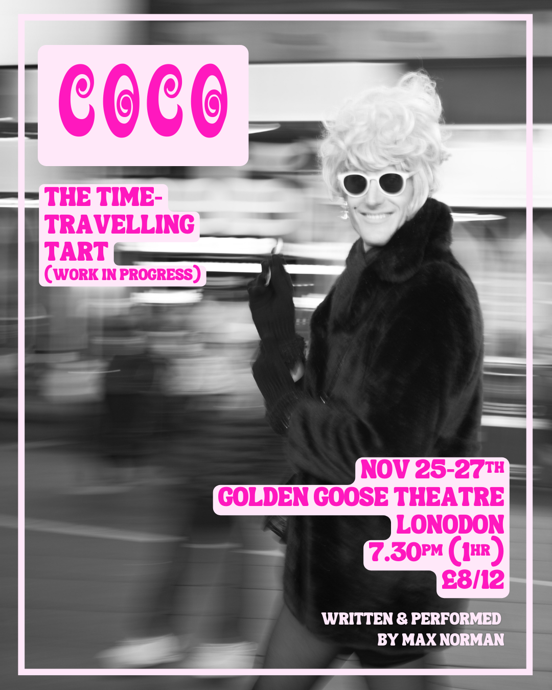 See Coco in her natural habitat—on stage, causing trouble. Whether it’s her own comedy night Coco & Friends, a solo theatre show, or a guest spot at a top venue, expect history, hilarity, and a touch of filth.